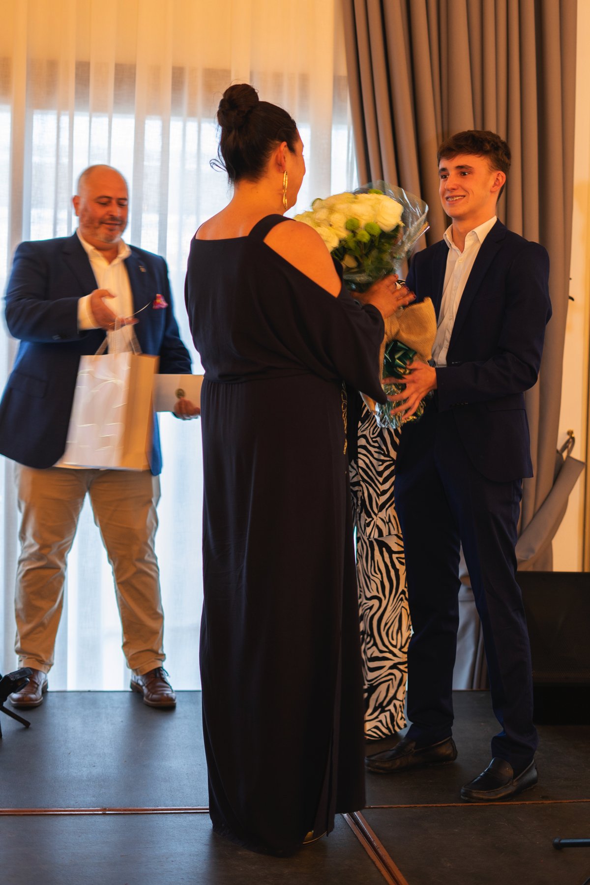 El acto se abrió recibiendo con una entrega de flores a las asistentes y un photocall donde pasaron todos los amigos, familiares y clientes del Grupo anfitrióncamino al cóctel servido por el catering Sal Verde de Grupo Azotea.
